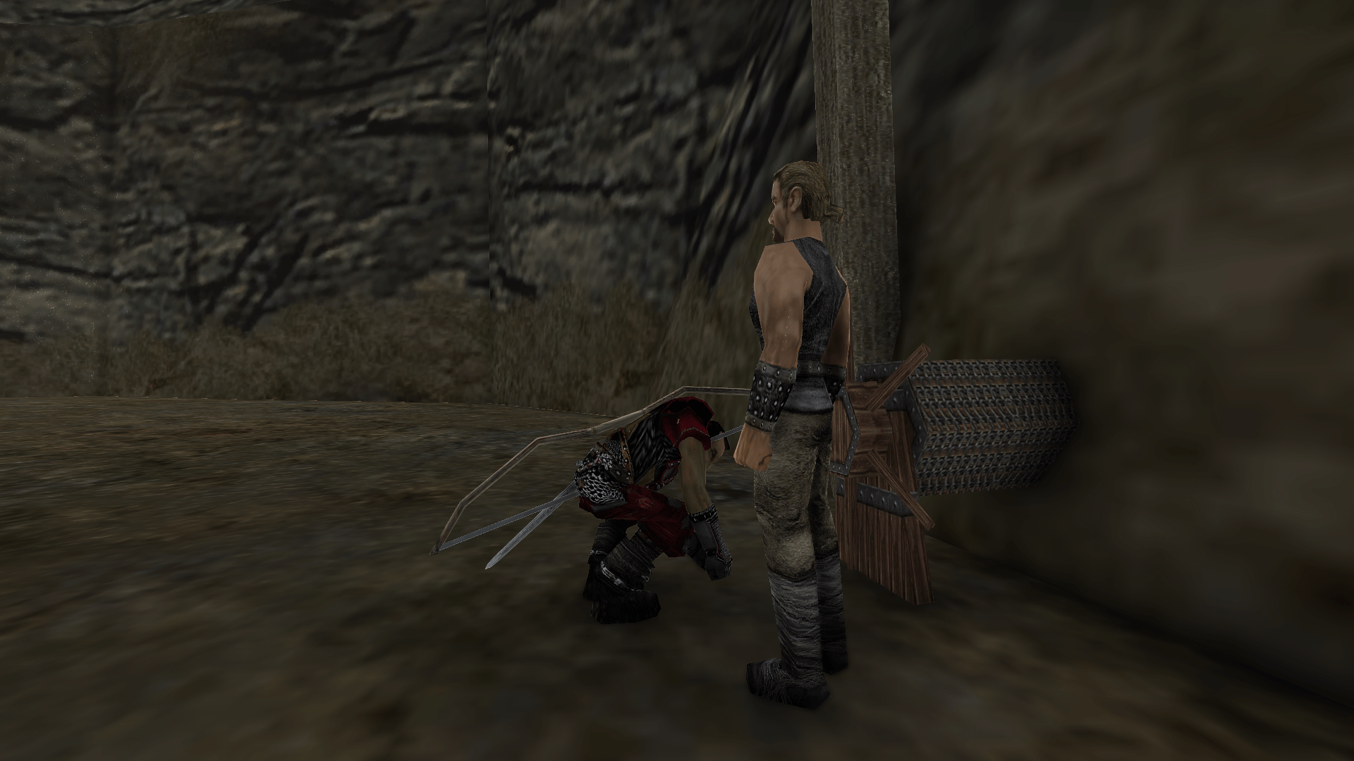 Diego i nasz bohater w czasie fabuły gry Gothic 1